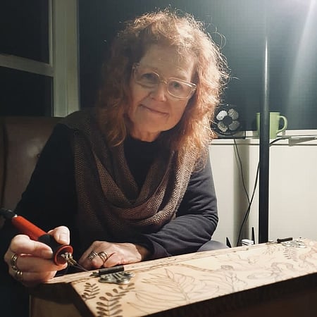 Ngaire specialise in up-cycling second hand finds, by etching glass, mirror, stone and burning onto wood, creating one-off unique pieces of art. She is strongly influenced by native NZ animals and plants, in particular our native NZ birds.