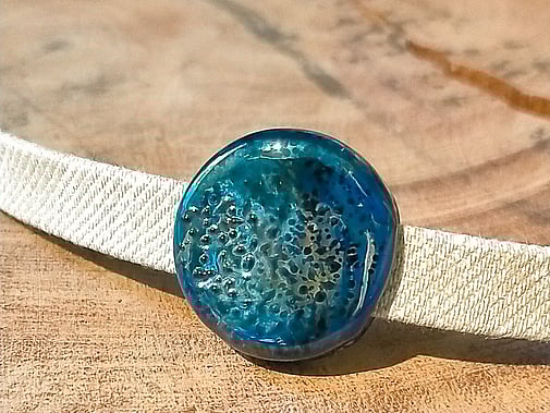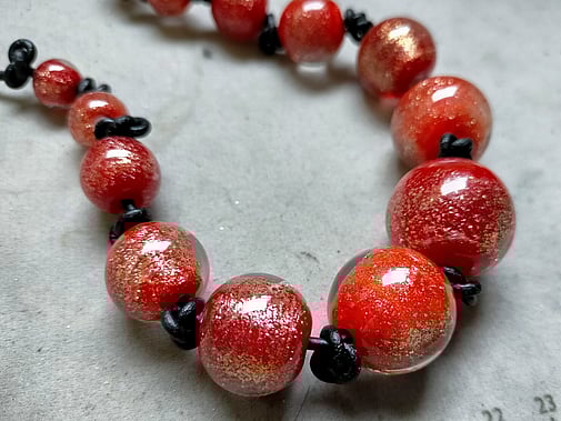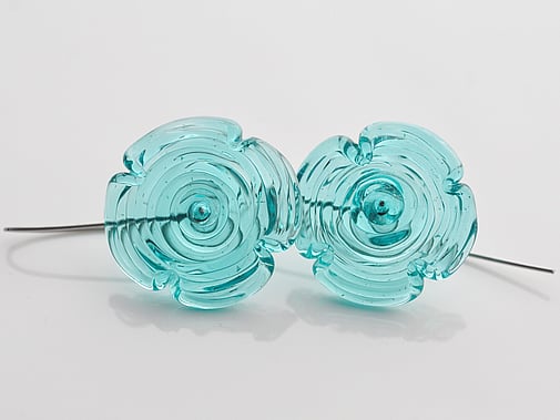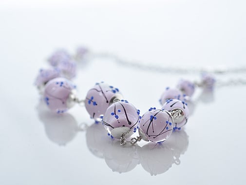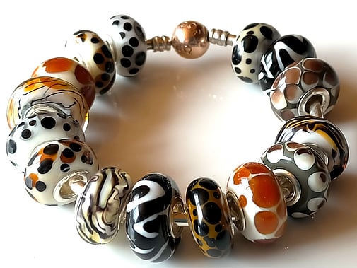 Philippa has been making lampwork beads for over a decade now. Lampwork is the art of making glass beads over a gas torch, using a mix of propane and oxygen. She uses what is called 'soft glass' or soda lime glass, which melts at between 1,400 and 1,600 degrees Celsius - so pretty hot!