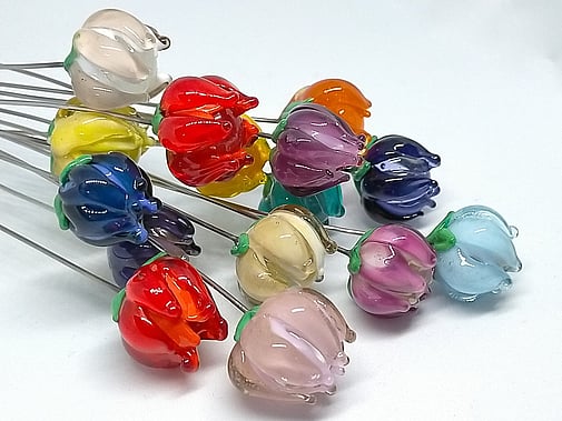 Her glass comes in slim rods in what feels like an endless variety of colours. She is happy to make to order too!